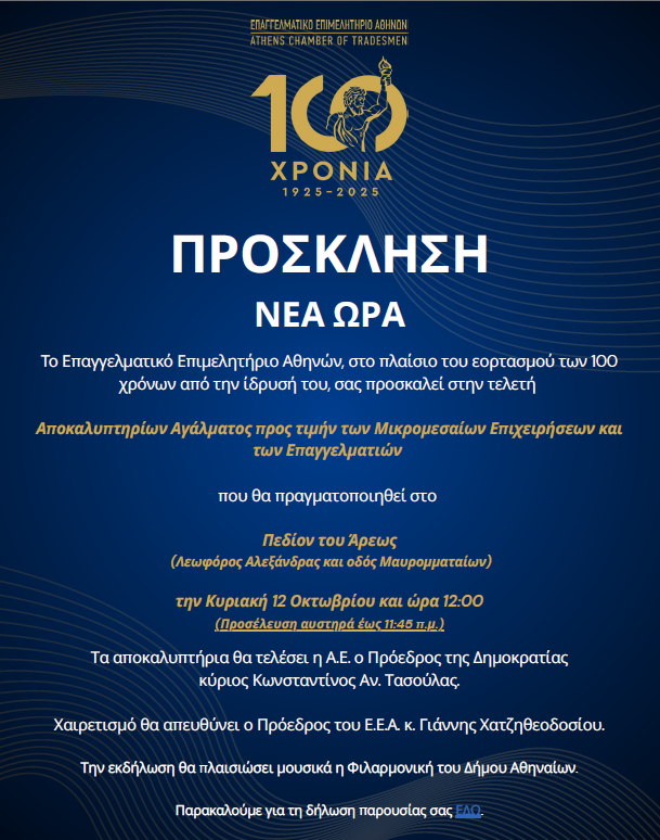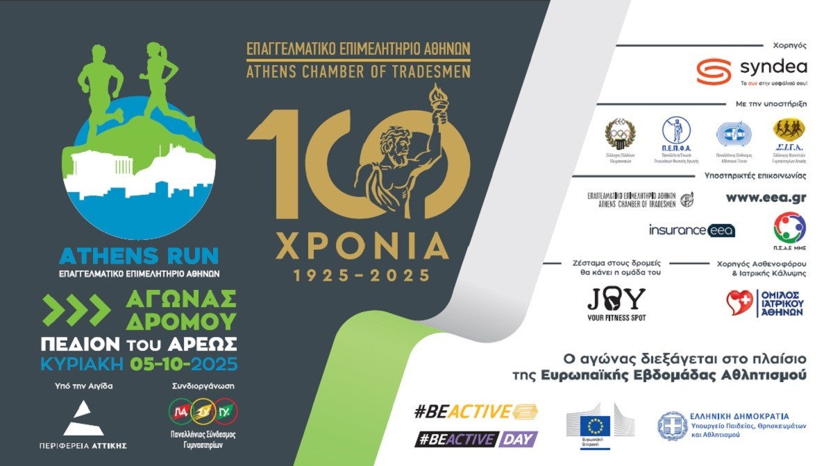 Το Επαγγελματικό Επιμελητήριο Αθηνών συνεχίζει τον θεσμό του Αγώνα Δρόμου για τις Μικρομεσαίες Επιχειρήσεις και τους Επαγγελματίες, δίνοντας φέτος ραντεβού την Κυριακή 5 Οκτωβρίου 2025, στο Πεδίον του Άρεως.